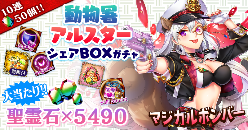 【『聖霊石×5490』やNEW使い魔が当たるチャンス!】動物署アルスターシェアBOXガチャ