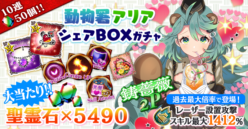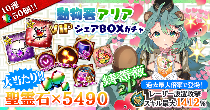 【VIPシェアBOXガチャも登場!『聖霊石×5490』が当たるチャンス!】動物署アリアシェアBOXガチャ