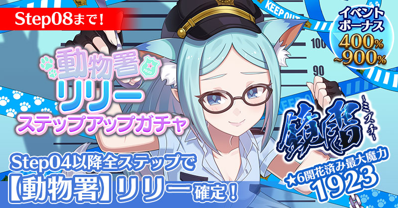【Step04以降全ステップで鏡雷確定!イベントボーナス+400%~900%付!】動物署リリーステップアップガチャ