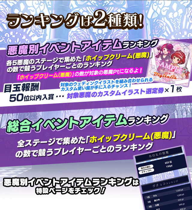 ※悪魔別Ptランキングにおいて、同ポイント数のユーザーが複数いる場合、先に到達したユーザーがランキング上位になります。