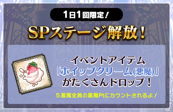 | 3話解放条件 | ホイップクリーム(悪魔)を5000個獲得 | ||