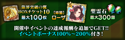 | 限界突破の翼 BOXチケット10 | 最大30個 | 最大60個 | 最大100個 |