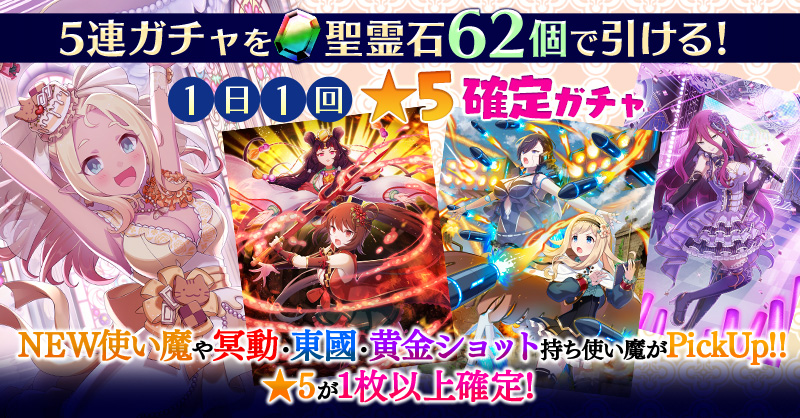 【一部NEW使い魔や冥動・東國・黄金ショット持ち使い魔などがPickUP】1日1回★5確定ガチャ