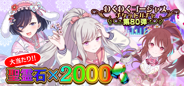| わくわくゴージャスガチャチケット80×10 | 有償アイテムパック(480円)A |