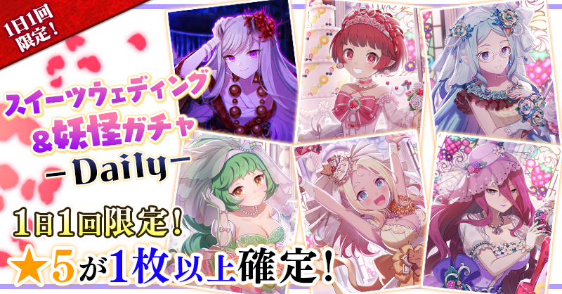 【★5が1枚以上確定&1日1回限定】スイーツウェディング&妖怪ガチャ-Daily-