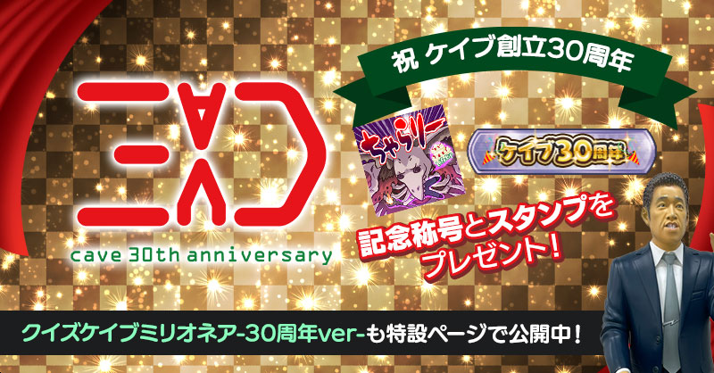 【祝ケイブ創立30周年‼】30周年記念ログインボーナスや激ムズステージなどが登場‼