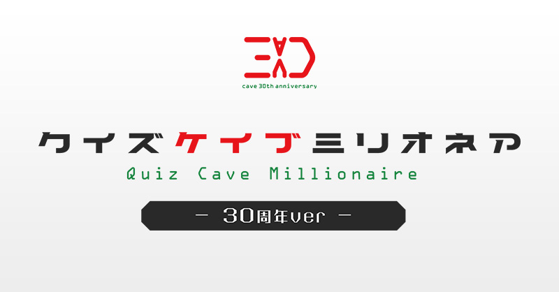 ケイブの創立30周年を記念して、ブラウザ上でクイズゲームが遊べる特設ページ「クイズケイブミリオネア-30周年ver-」を公開しました。 ぜひお楽しみください。