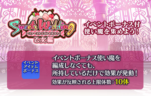 ウェディングイベント【スイーツウェディング~ファーストバイトは大口で~ 乙女編】ボーナス一覧