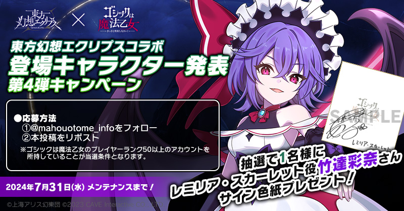 【フォロー&RPでサイン色紙をプレゼント!】東方幻想エクリプスコラボ登場キャラクター発表第4弾