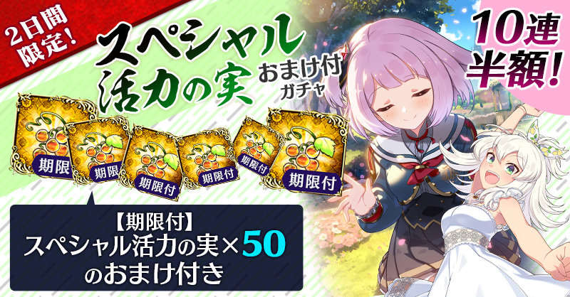 【2日間限定&10連半額!】スペシャル活力の実おまけ付ガチャ