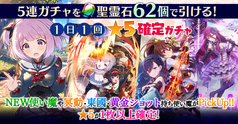 【一部NEW使い魔や冥動・東國・黄金ショット持ち使い魔などがPickUP】1日1回★5確定ガチャ