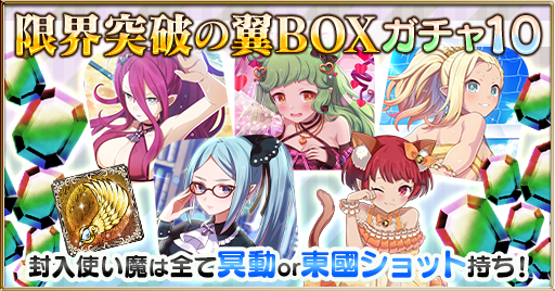 限界突破の翼、使い魔、聖霊石のいずれかが必ず当たる「限界突破の翼BOXガチャ10」を引くことができるガチャチケットです。