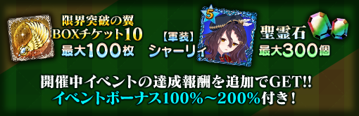 | 限界突破の翼 BOXチケット10 | 最大30個 | 最大60個 | 最大100個 |