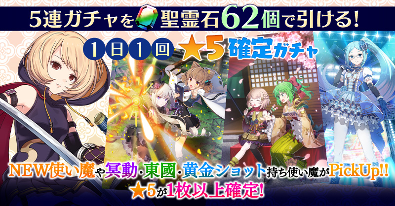 【一部NEW使い魔や冥動・東國・黄金ショット持ち使い魔などがPickUP】1日1回★5確定ガチャ