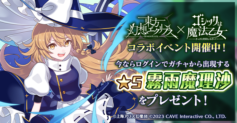 今なら期間中のログインで新ショット「イリュージョンレーザー」持ち★5霧雨魔理沙をプレゼント!