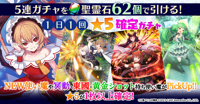 【一部NEW使い魔や冥動・東國・黄金ショット持ち使い魔などがPickUP】1日1回★5確定ガチャ