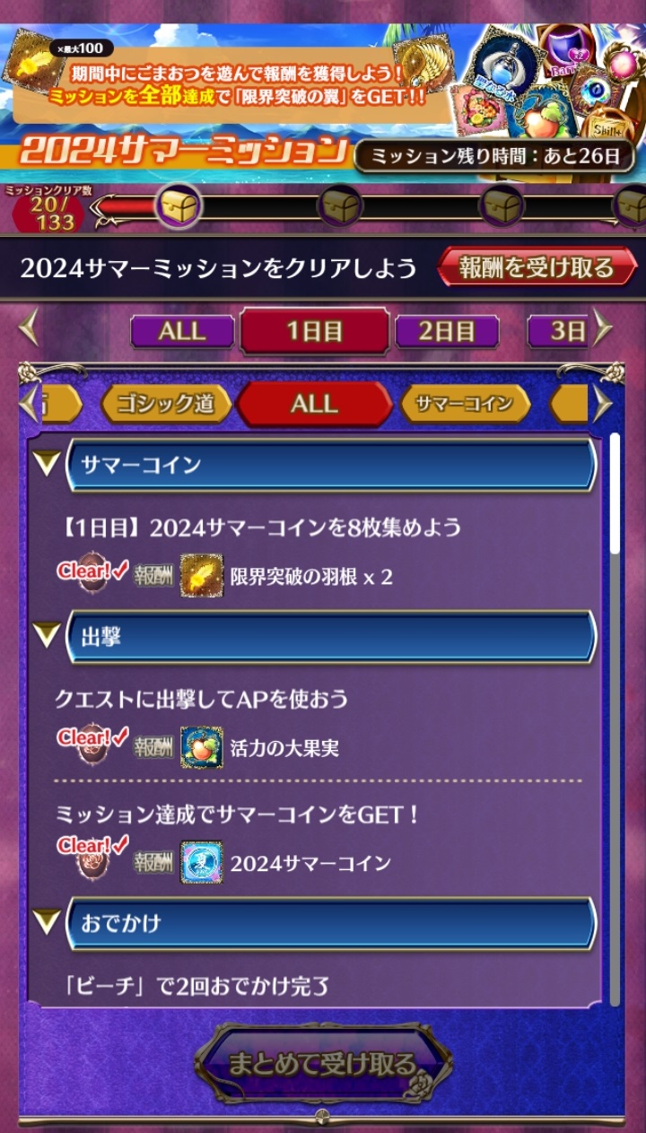 - ミッションの報酬は全てミッション画面で獲得することができます。