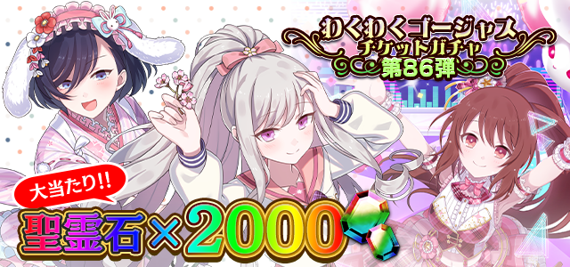 | わくわくゴージャスガチャチケット86×10 | 有償アイテムパック(480円)A |