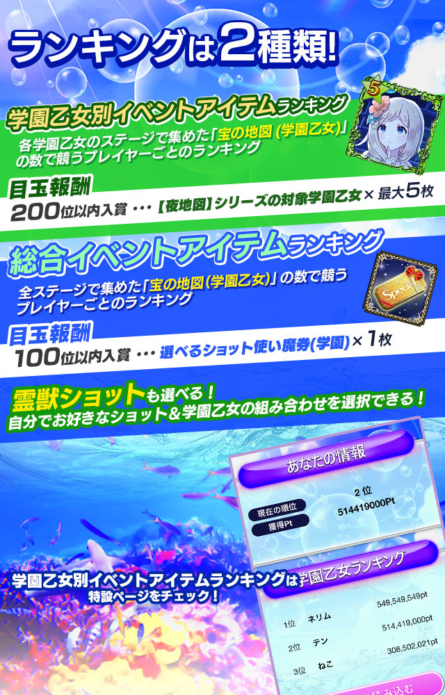 | 50位以内 入賞 | 強ショットガチャチケット3(対象学園乙女の属性) | 1枚 |