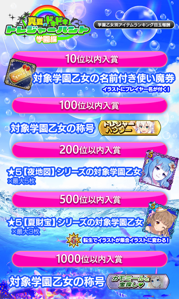 夏の大型イベント第3弾【真夏のドキドキ♥トレジャーハント!学園編】開催!