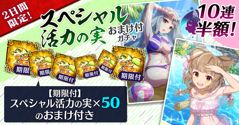 【2日間限定&10連半額!】スペシャル活力の実おまけ付ガチャ