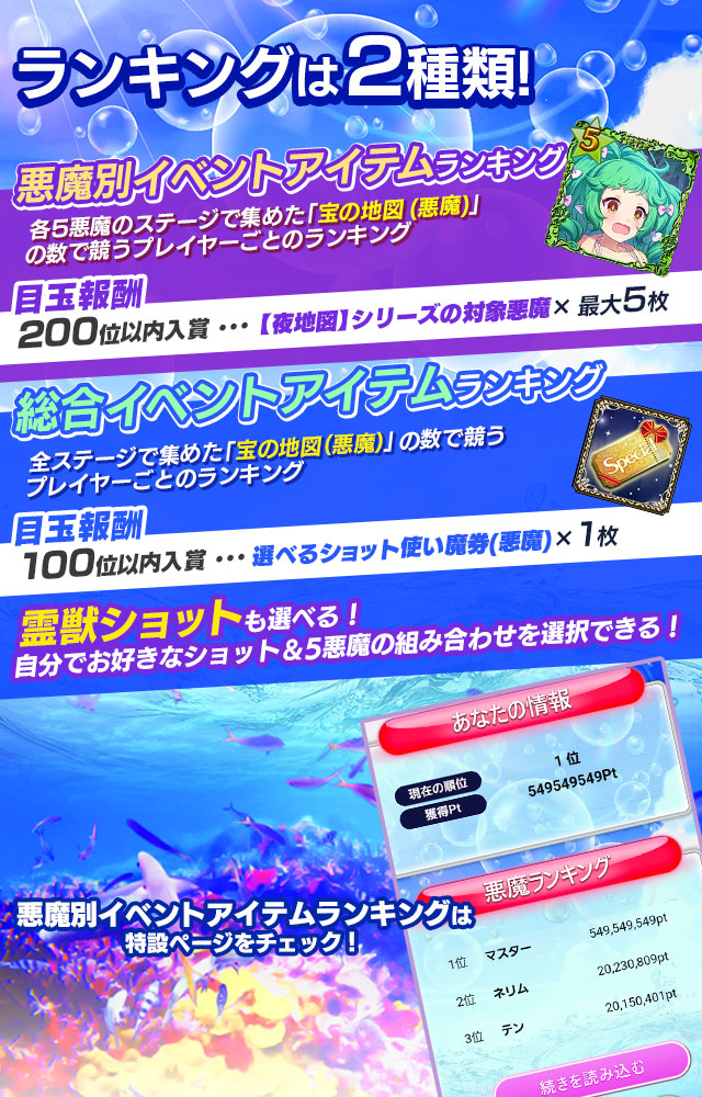 夏の大型イベント第2弾【真夏のドキドキ♥トレジャーハント!悪魔編】の総合イベントアイテムランキングで100位以内に入賞したお客様は、アプリ内の本お知らせ内、もしくはアプリ内のお知らせ一覧の上部にある入力フォームよりご連絡ください。