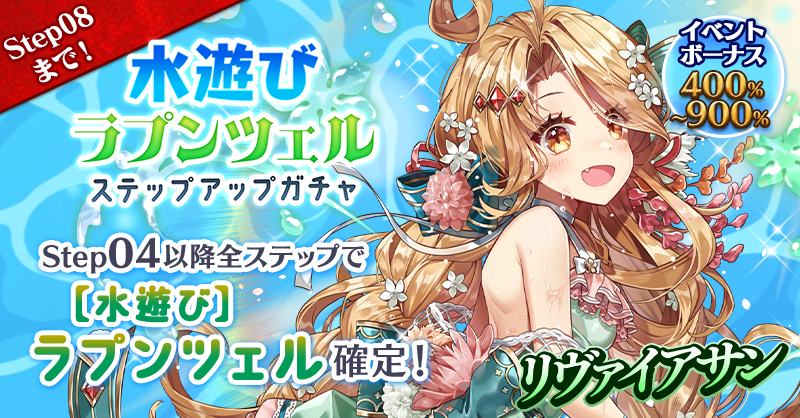 【Step04以降全ステップでイベントボーナス+400%~900%持ち【水遊び】ラプンツェル確定!】水遊びラプンツェルステップアップガチャ