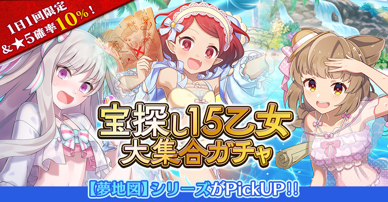 【1日1回限定&★5確率10%!】宝探し15乙女大集合ガチャ