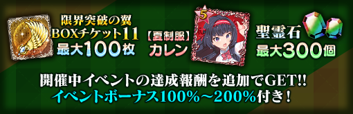 | 限界突破の翼 BOXチケット11 | 最大30個 | 最大60個 | 最大100個 |