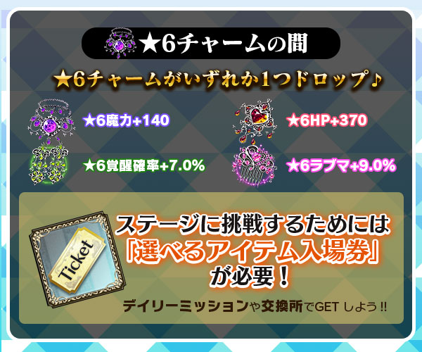 【聖霊石や★6チャームなどがステージでドロップ!】選べるアイテム!ステージ開催!