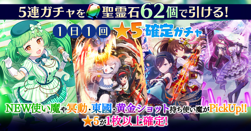 【一部NEW使い魔や冥動・東國・黄金ショット持ち使い魔などがPickUP】1日1回★5確定ガチャ