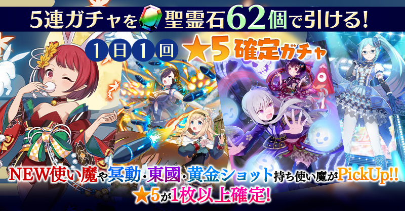 【一部NEW使い魔や冥動・東國・黄金ショット持ち使い魔などがPickUP】1日1回★5確定ガチャ