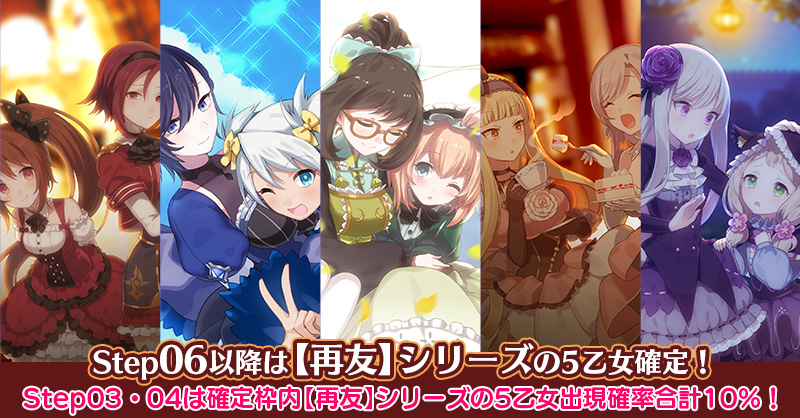 【Step03・04は確定枠内【再友】シリーズの5乙女出現確率合計10%!】おともだちステップアップガチャ