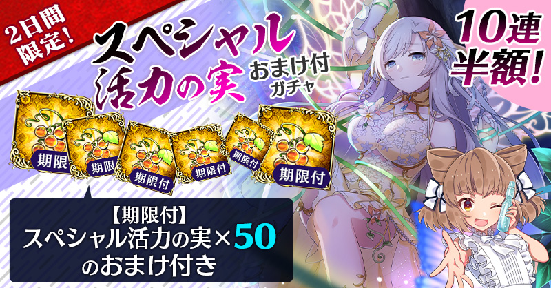 【2日間限定&10連半額!】スペシャル活力の実おまけ付ガチャ