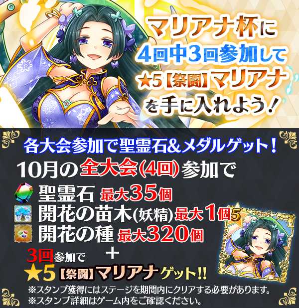 【毎週土曜!3回参加で★5【祭闘】マリアナGET】10月全国スコア大会!!