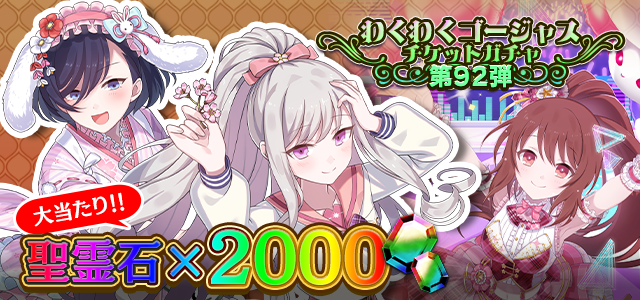 | わくわくゴージャスガチャチケット92×10 | 有償アイテムパック(480円)A |