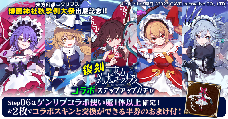 [10/21 17:00追記]【Step06はゲンリプコラボ使い魔1体以上確定!】復刻東方幻想エクリプスコラボステップアップガチャ