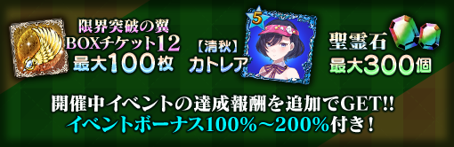 | 限界突破の翼 BOXチケット12 | 最大30個 | 最大60個 | 最大100個 |