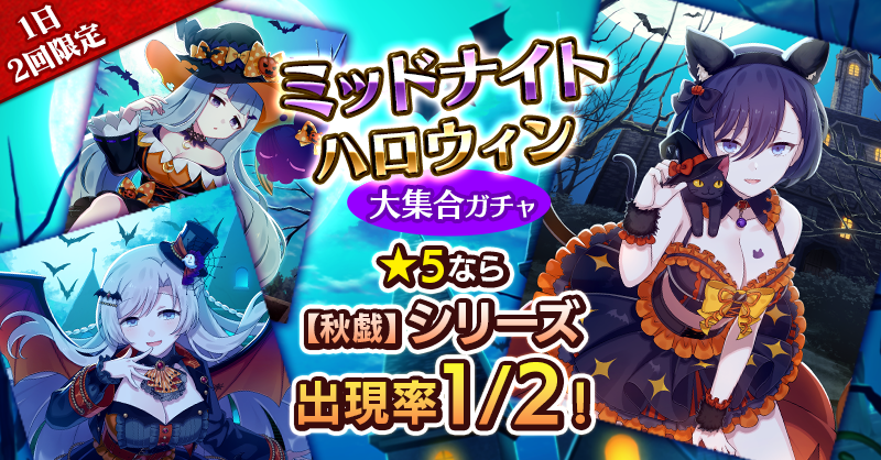 【1日2回限定&★5なら【秋戯】シリーズ出現率1/2!】ミッドナイトハロウィン大集合ガチャ
