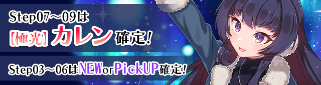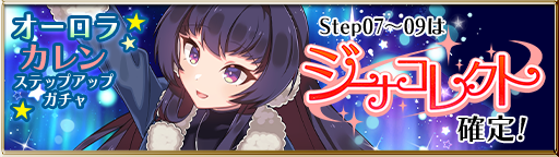 - ステップアップガチャは、Step数によってガチャの提供内容が変化します。 Step数の上昇により必ずしも提供内容がより良い内容に変化することを保証するわけではありません。