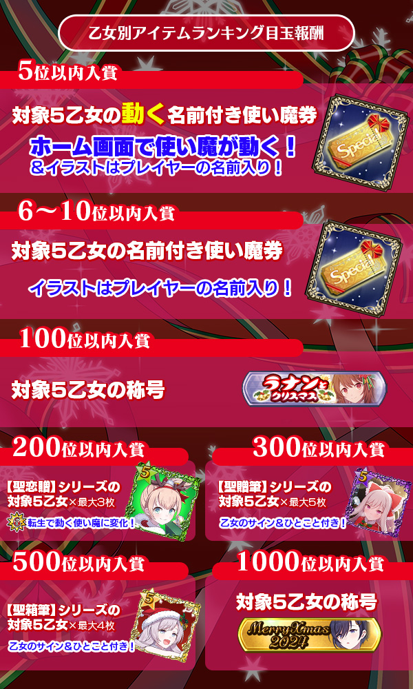 乙女別イベントアイテムランキング入賞でGET!! | ||