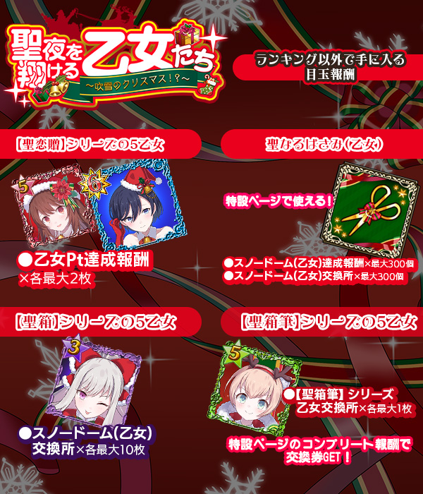 | スノードーム(乙女)達成報酬 | 最大300個 |