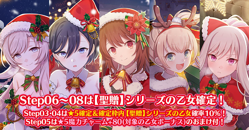 【Step03・04は【聖贈】シリーズの5乙女出現確率10%!】クリスマス乙女サンタステップアップガチャ