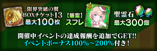 | 限界突破の翼 BOXチケット13 | 最大30個 | 最大60個 | 最大100個 |