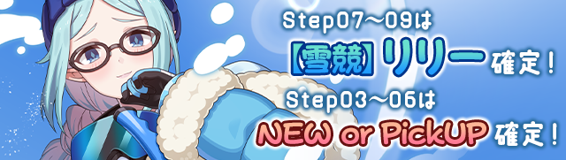 - ステップアップガチャは、Step数によってガチャの提供内容が変化します。 Step数の上昇により必ずしも提供内容がより良い内容に変化することを保証するわけではありません。