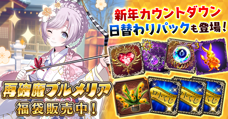 【『ヘビーな★ロトくじ』付!】再破魔プルメリア福袋や新年カウントダウン日替わりパックなどが登場!