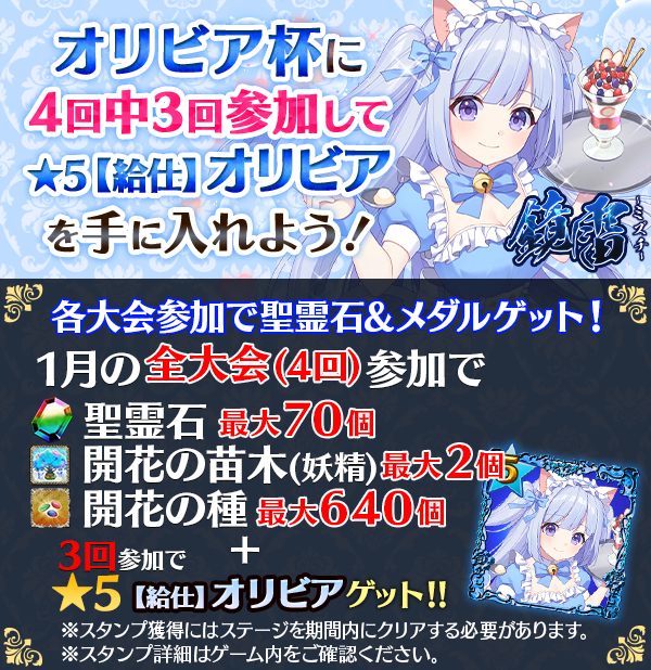 【毎週土曜!3回参加で★5【給仕】オリビアGET】1月全国スコア大会!!