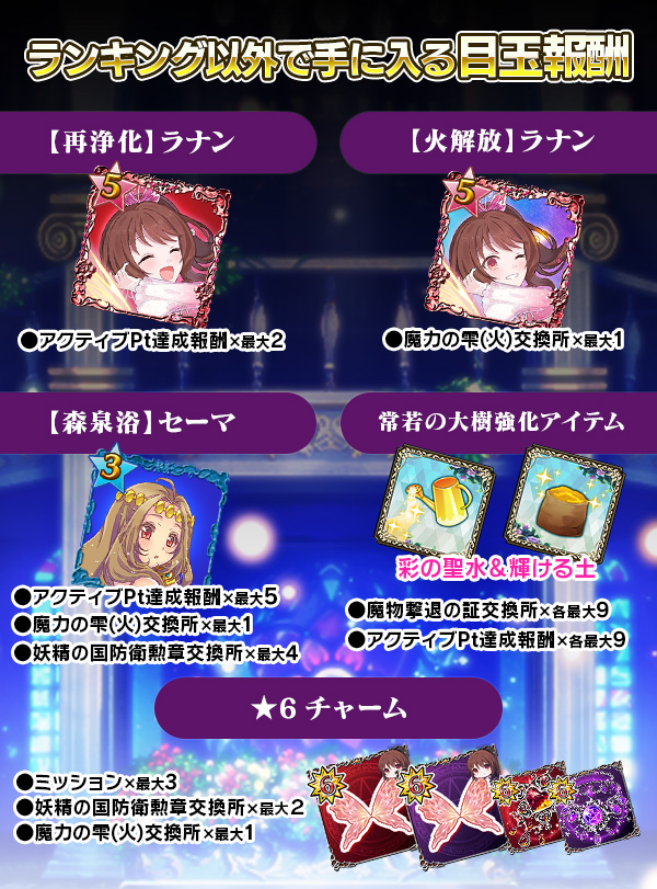 - ★5【再浄化】ラナン、【火解放】ラナン、【呼応】ルベリスの各使い魔の転生条件は以下の通りです。