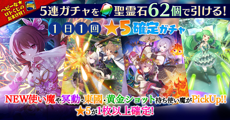 【一部NEW使い魔や冥動・東國・黄金ショット持ち使い魔などがPickUP】1日1回★5確定ガチャ