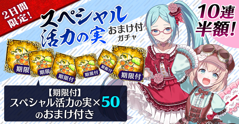 【2日間限定&10連半額!】スペシャル活力の実おまけ付ガチャ